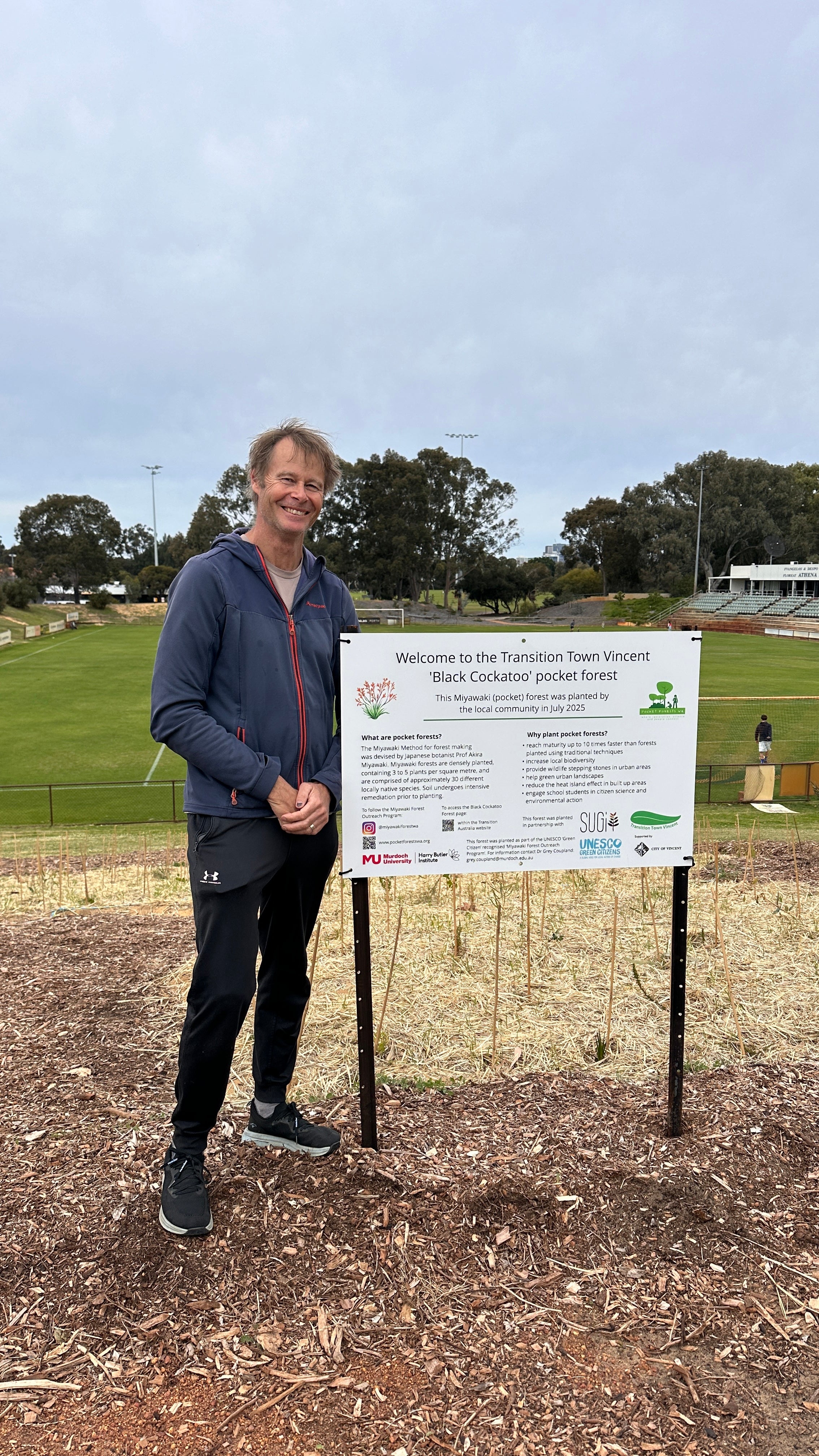 The site will provide a local demonstration of how to restore above and below ground biodiversity and soil carbon using the principles developed by Dr Akira Miyawaki and adapted to Perth conditions by Dr Coupland. It will also provide a training ground for those residents and others who want to establish a pocket forest in their yard or courtyard as part of their My Healthy Soils Project.